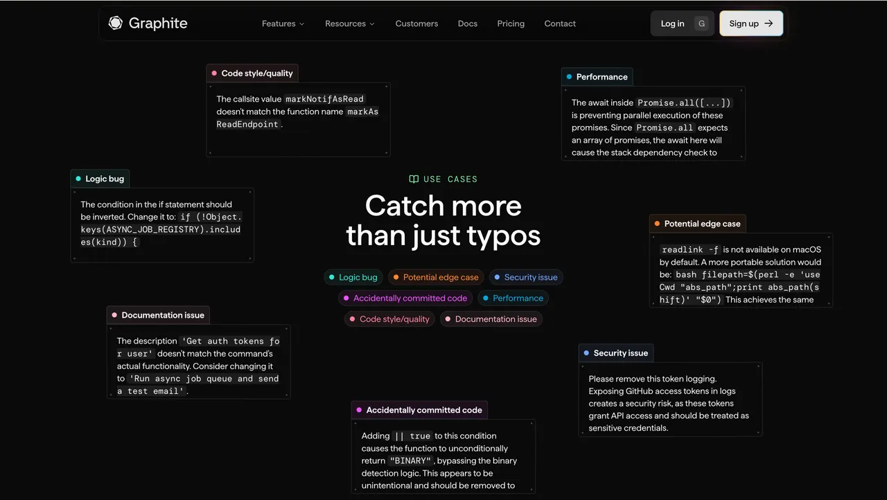 Graphite Agent is explicitly positioned as more than “leave comments”: their product messaging says it can help you act on feedback (fix issues, update PRs, and merge in a collaborative loop).