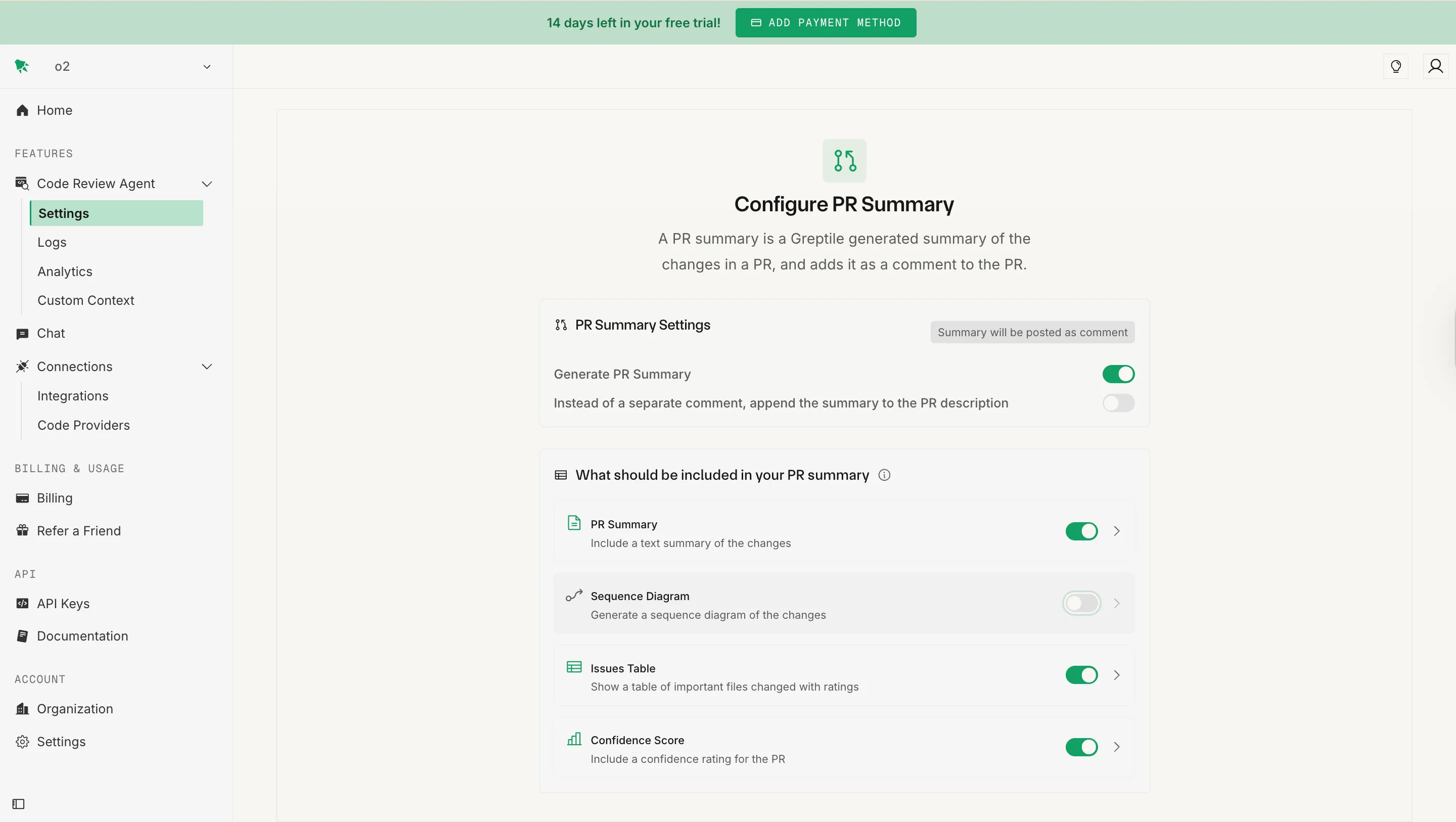 Greptile is an AI code review agent that connects to GitHub and posts PR summaries/reviews as comments (instead of you manually pasting diffs into a chat). Greptile positions it as a code reviewer (not a code generator) with configurable review behavior and optional artifacts like diagrams.