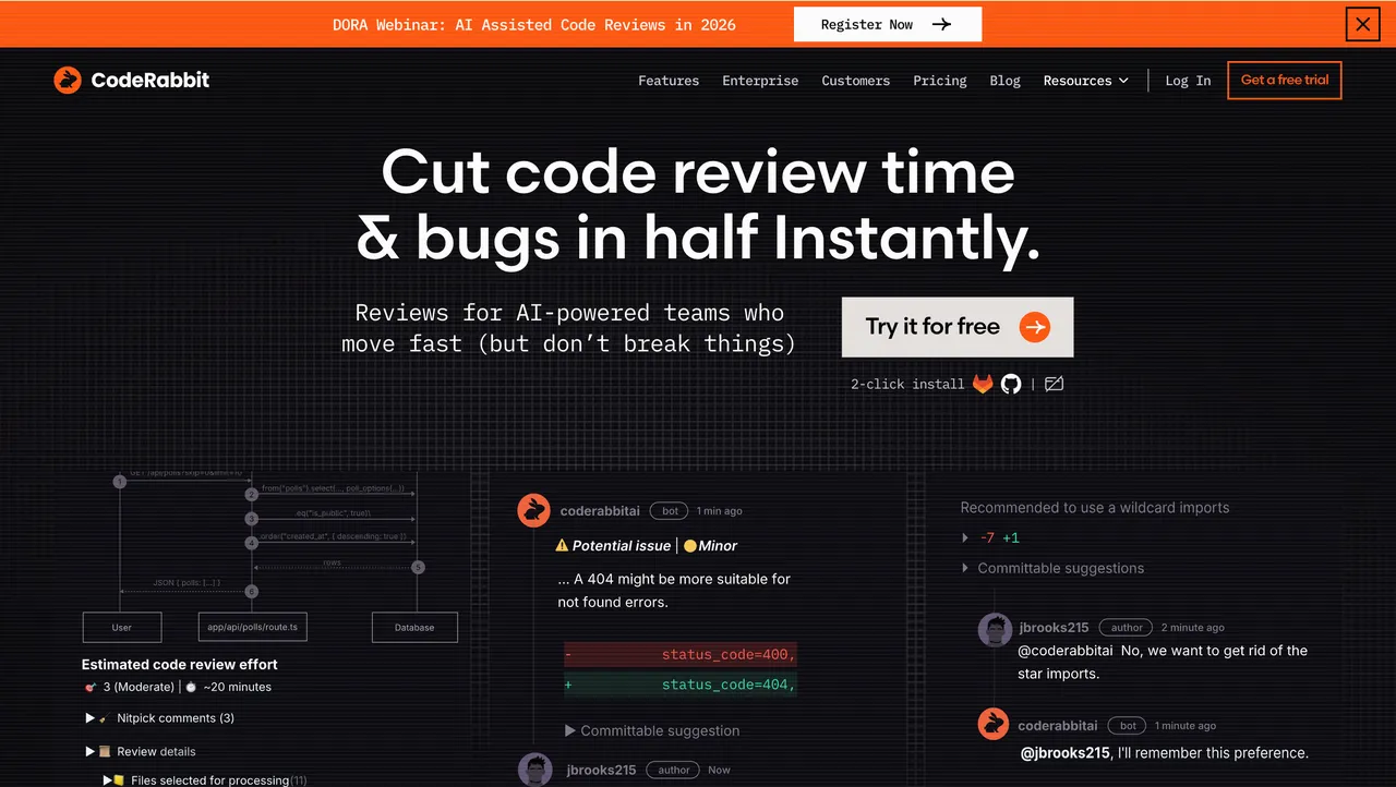 CodeRabbit is an AI-powered pull request review assistant designed to reduce manual review time by automatically analyzing code changes and posting structured feedback directly inside GitHub. It focuses heavily on security issues, logic flaws, performance risks, and behavioral inconsistencies, and it presents findings with severity levels and suggested fixes.