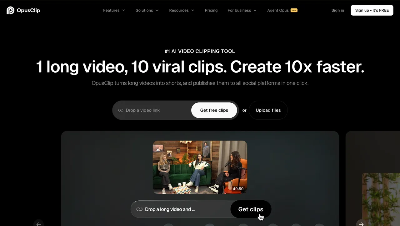 If your main goal is turning long videos into short-form clips with minimal effort, OpusClip performs efficiently.