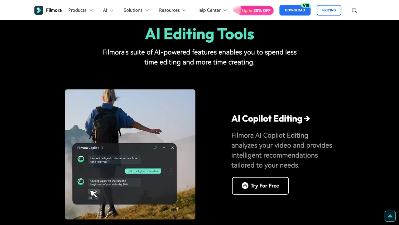 If you want accessible AI features inside a traditional timeline editor without a steep learning curve, Filmora is a practical option.