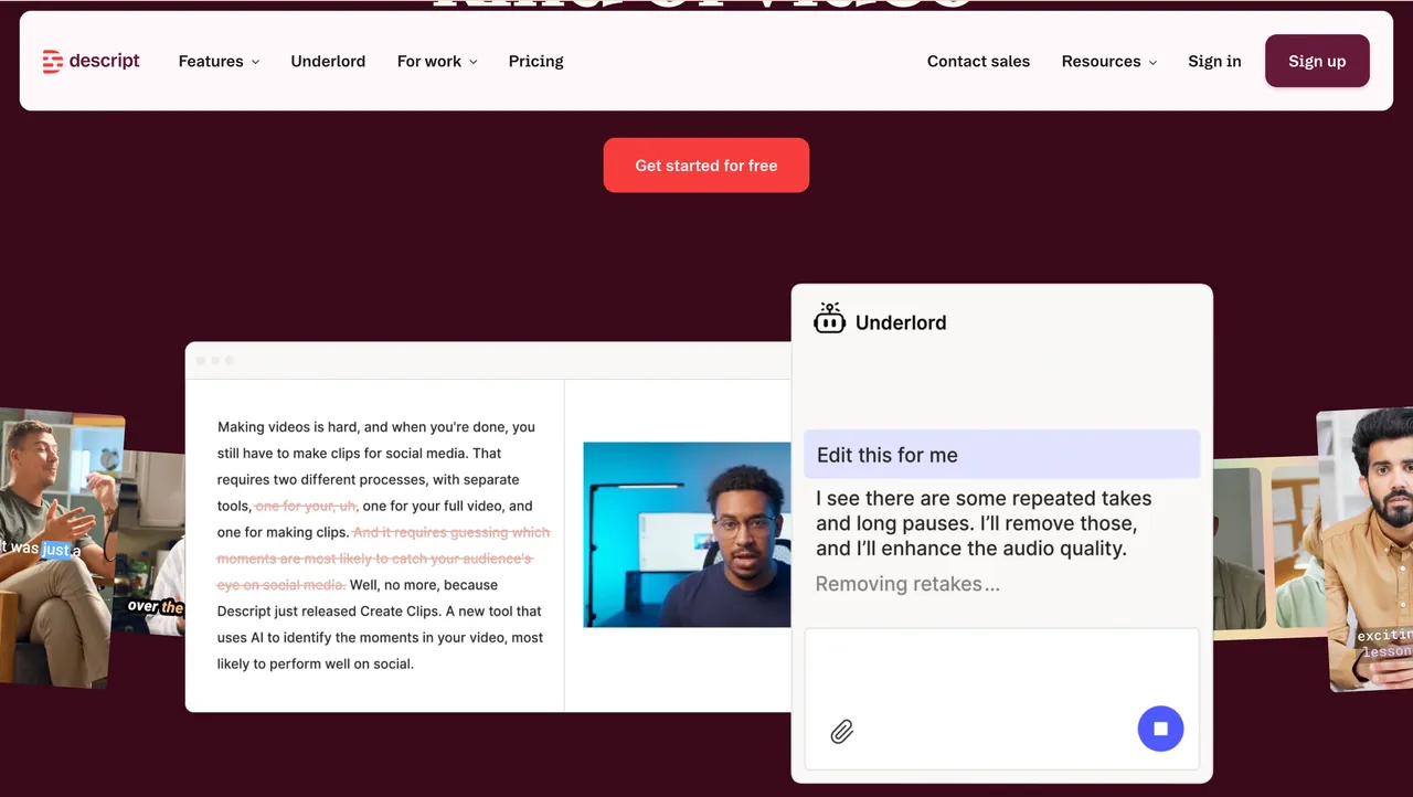 If your content is dialogue-heavy and you want to edit through text instead of a traditional timeline, Descript is one of the most efficient tools available in 2026.