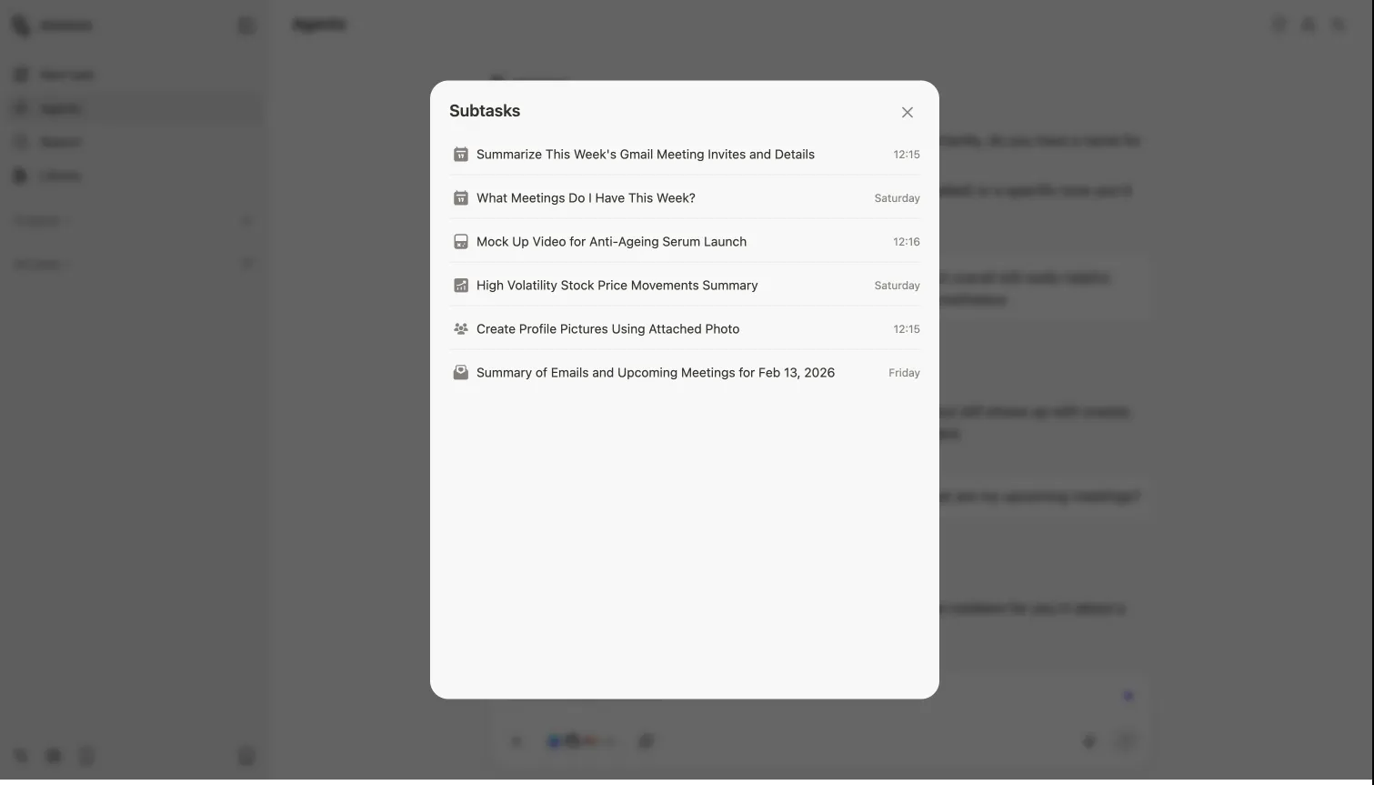 A: Yes. Your agent transcribes voice messages, interprets the request, and takes action. You can manage tasks, set up automations, or ask questions entirely by voice.