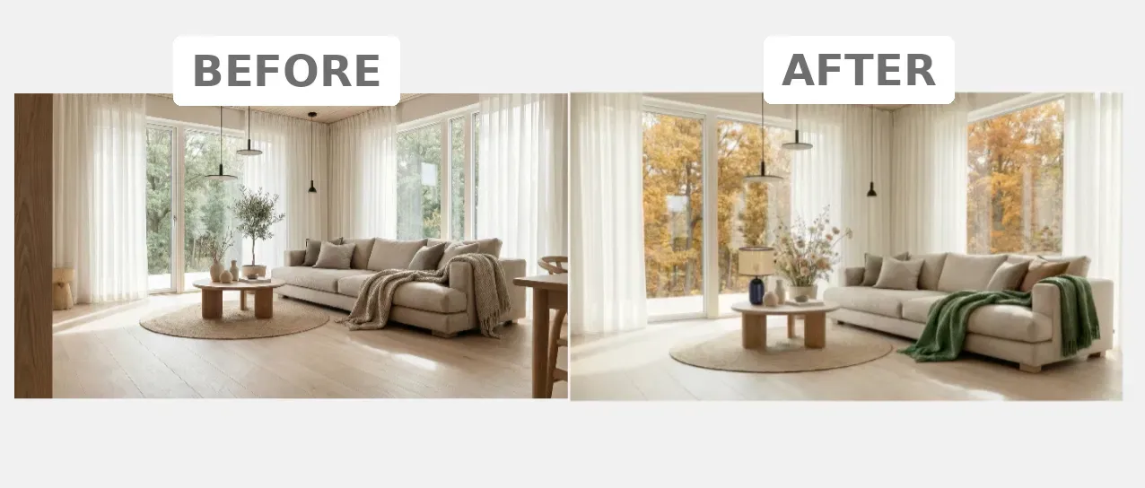 Manus generates a beautiful starting point. But the client mentioned wanting a different sofa color. This is where the old workflow would break down. Not anymore.