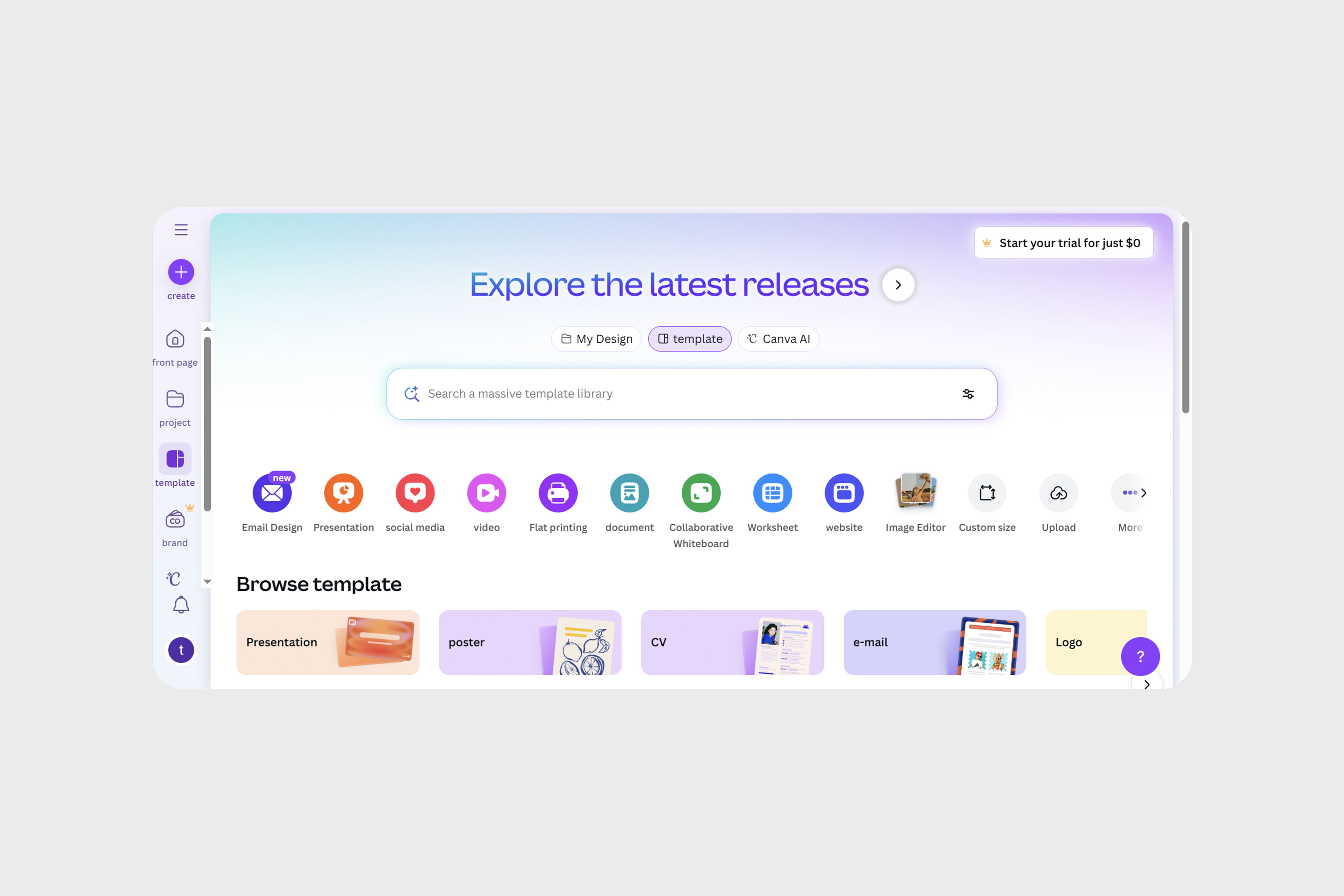 Canva is a comprehensive design platform that extends beyond presentations. With 100+ million assets and extensive customization options, it's perfect for teachers who want complete creative control or need to maintain school branding.