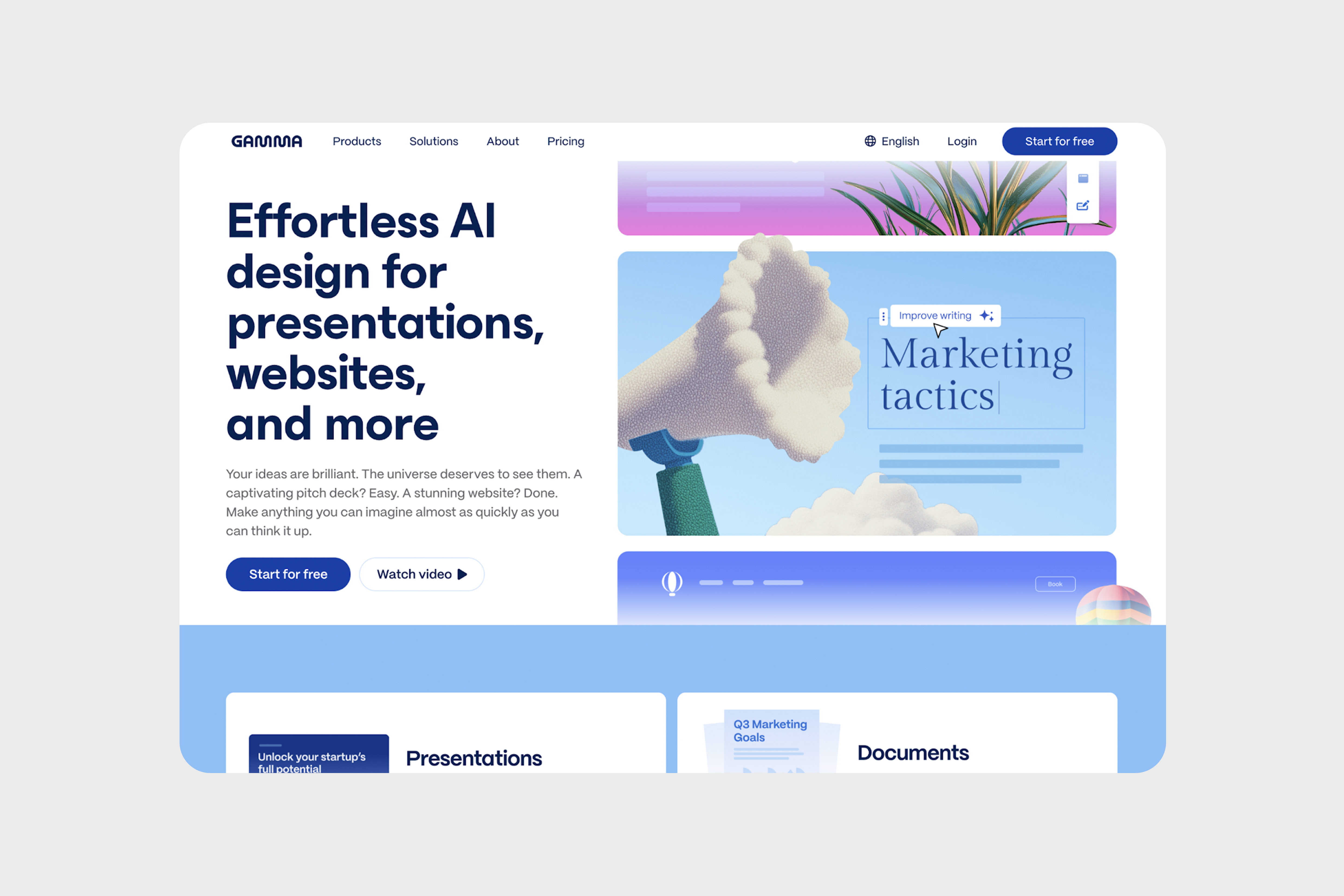 Quick, modern slides for digital natives | Gamma | Fast generation with web-native, visually striking design |