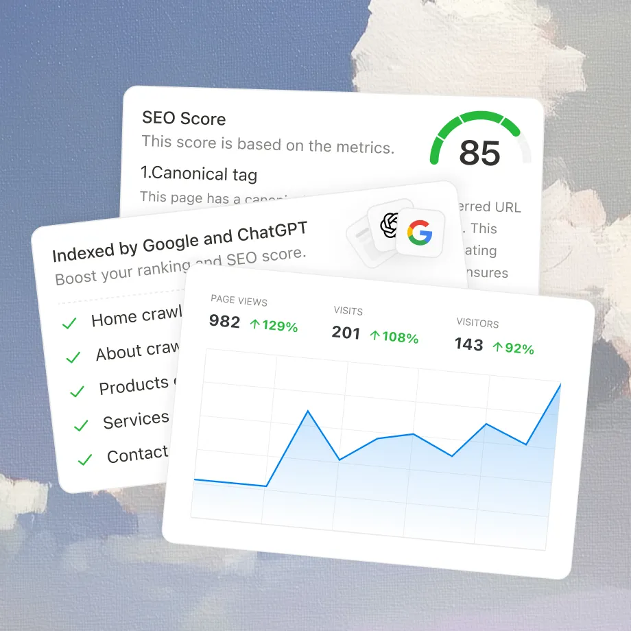 AI powered SEO optimization— Get your site crawled and indexed by Google and ChatGPT to boost your ranking and SEO score.