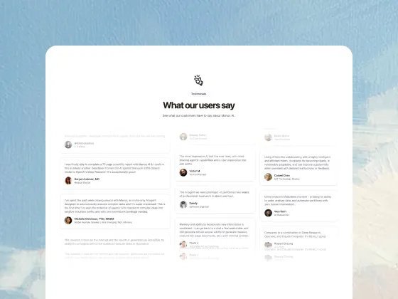 Join thousands of founders, creators, and businesses using Manus to bring their ideas to life. Manus isn't just a website builder. It's your AI development team.