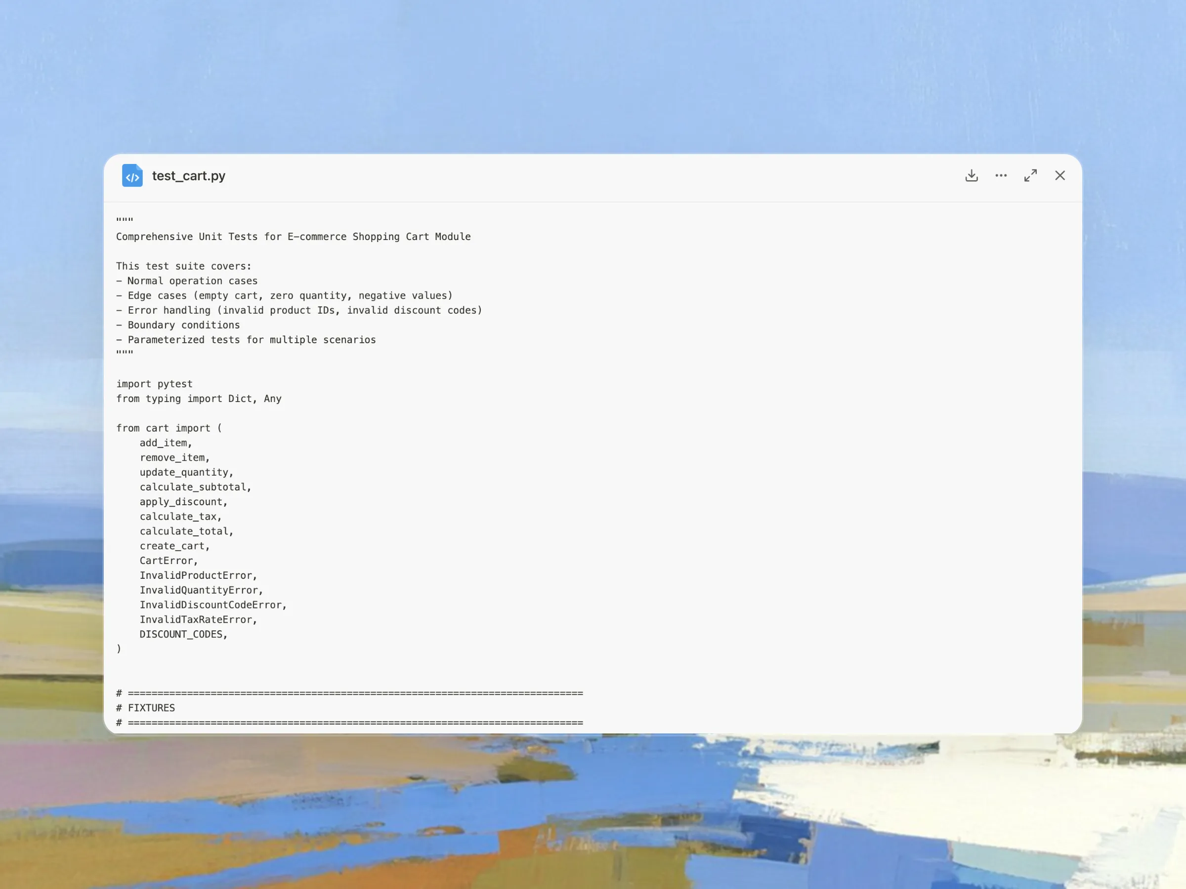 Write Python, JavaScript, React, TypeScript, Java, C++, and more. Just describe what you need and get clean, well-documented code in seconds.