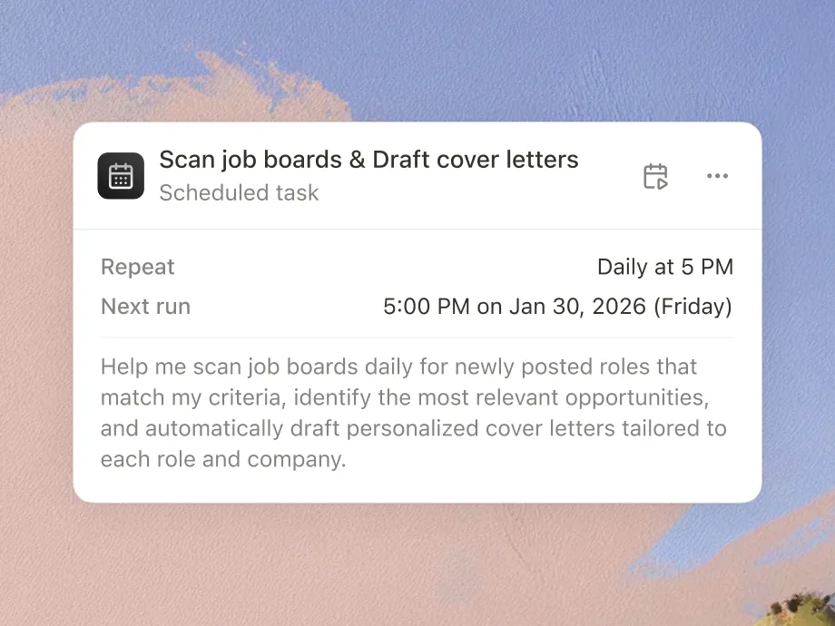 Schedule Manus to find job postings and write personalized cover letters daily. Wake up to ready-to-send applications.