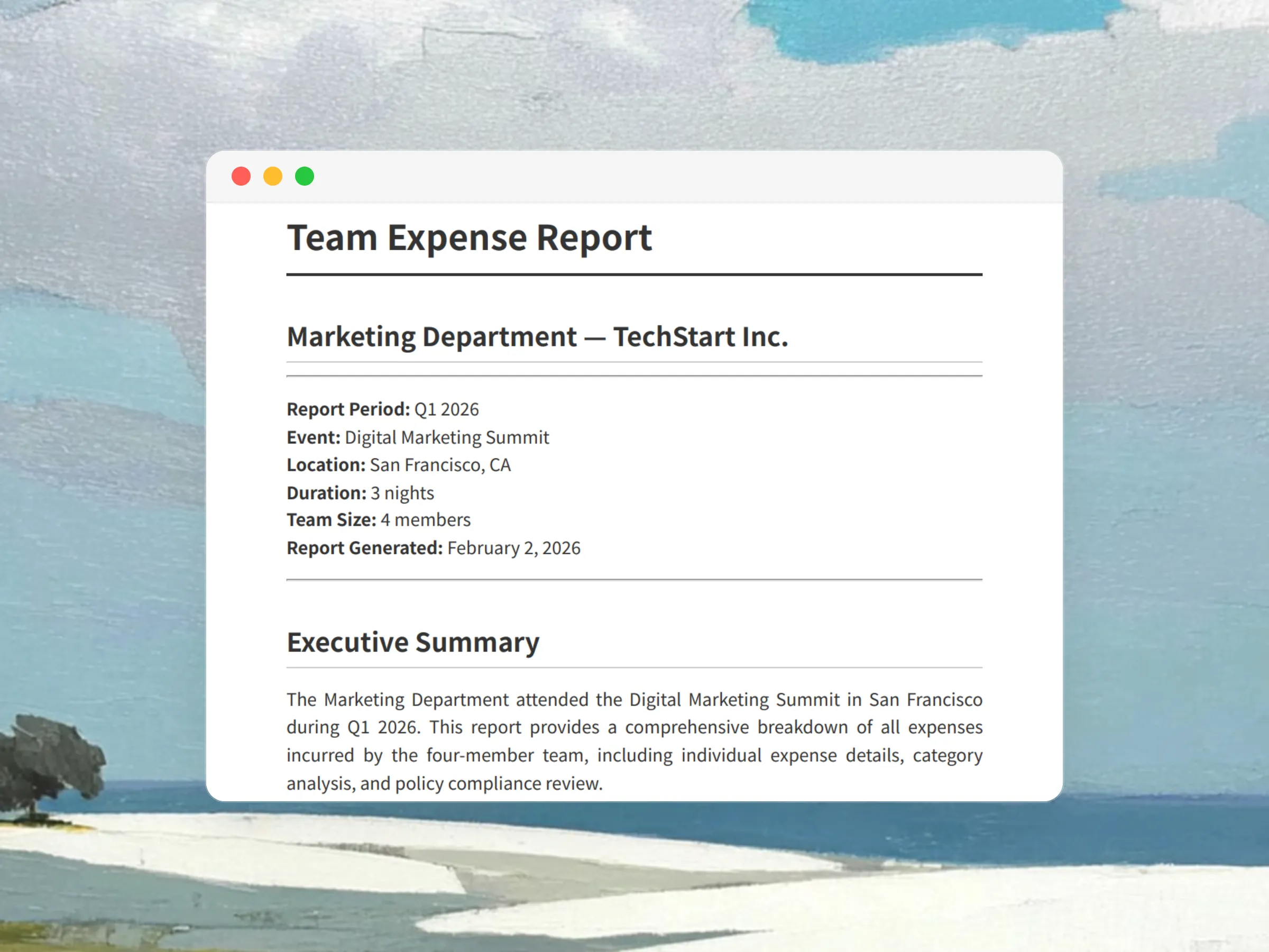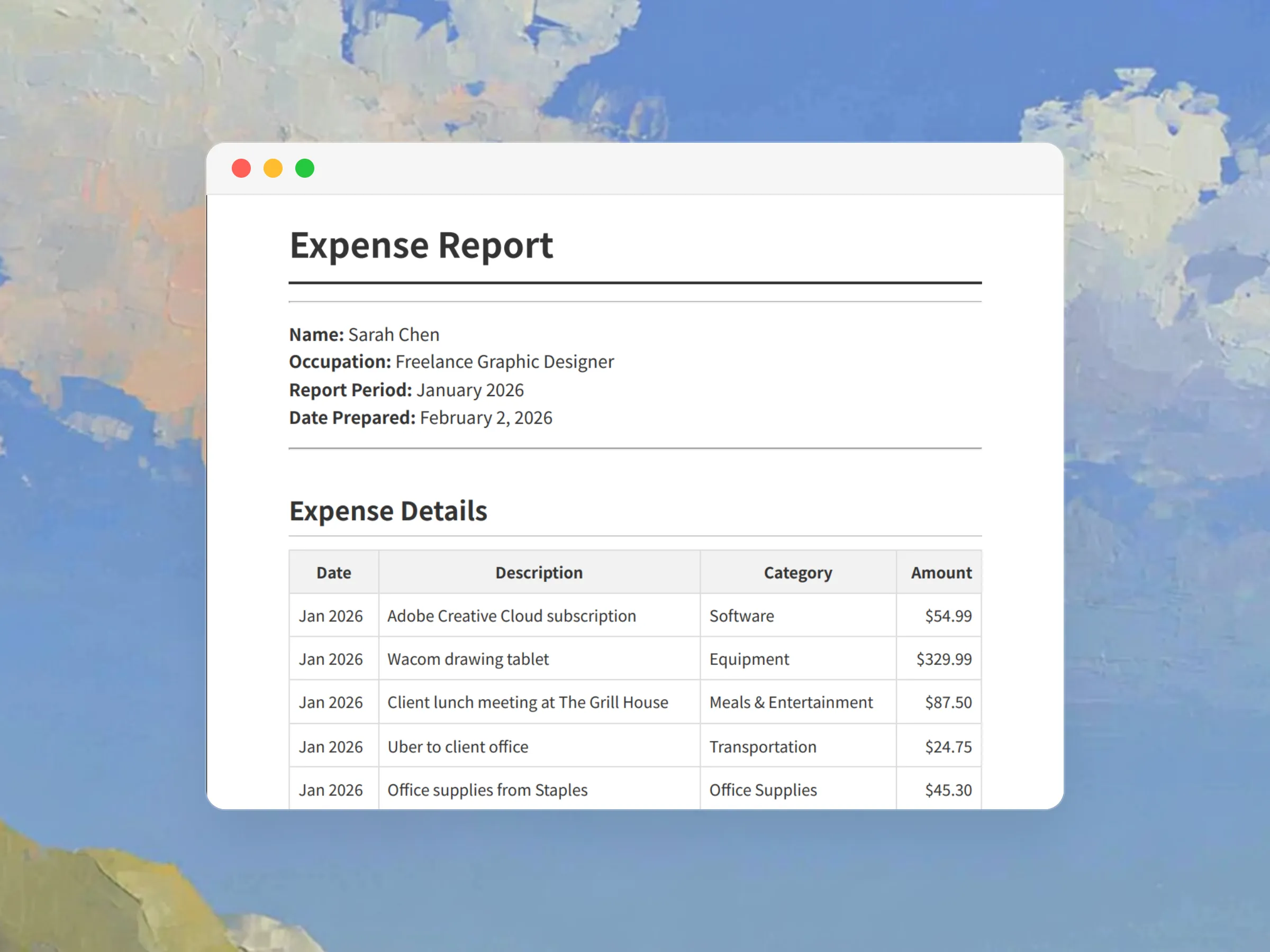 Streamline your expense reporting process. Manus's AI expense report generator extracts data from receipts, categorizes expenses, and creates professional reports in minutes.