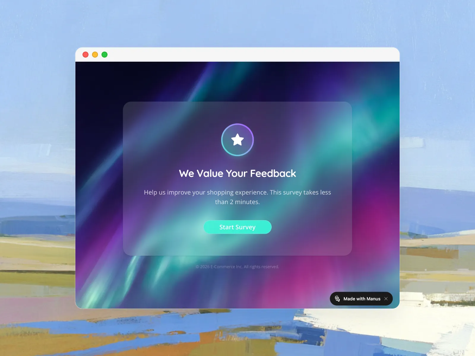 Yes! Manus creates forms with multiple question types including rating scales, Likert scales, multiple choice, checkboxes, open-ended text fields, NPS scores, and matrix questions. You can also request conditional logic where follow-up questions appear based on previous answers.