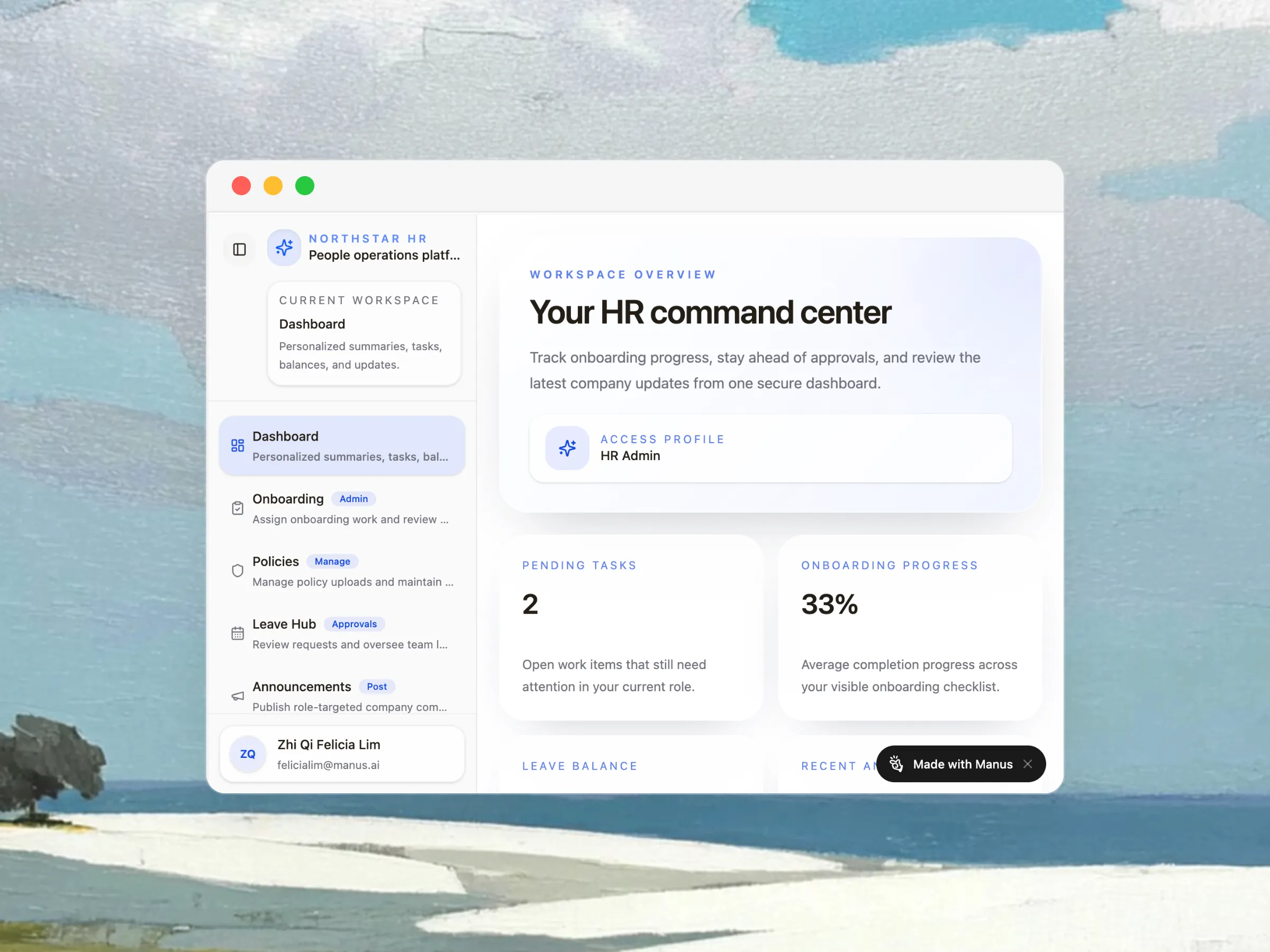 Internal tool websites usually need dashboards, forms, approvals, searchable documentation, and clearly separated permissions. Manus helps you plan those elements together so the experience feels consistent across teams. That reduces the sprawl that often appears when companies build each workflow in isolation.