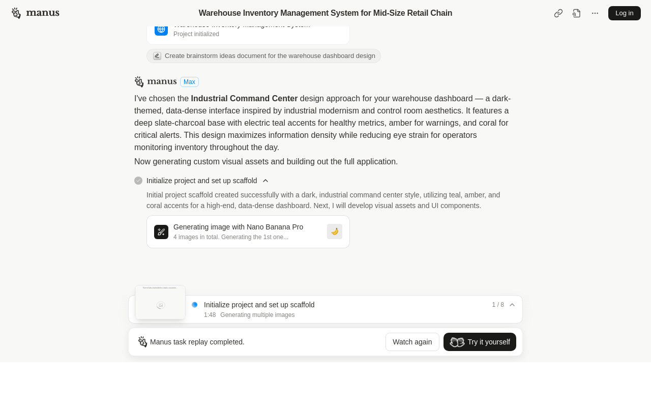 Build smart inventory tracking systems with Manus AI—automate stock monitoring, reorder alerts, and demand forecasting in minutes.
