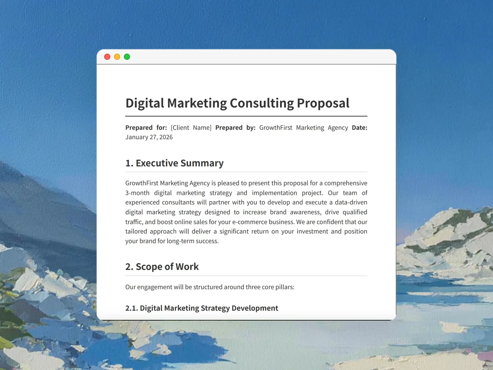 Not at all. Simply describe what you need to quote—the products, services, client details, and pricing requirements. Manus handles all the calculations, formatting, and professional document creation. No spreadsheet skills or design experience needed. You focus on selling while Manus handles the paperwork. For detailed reports, try our AI report generator.