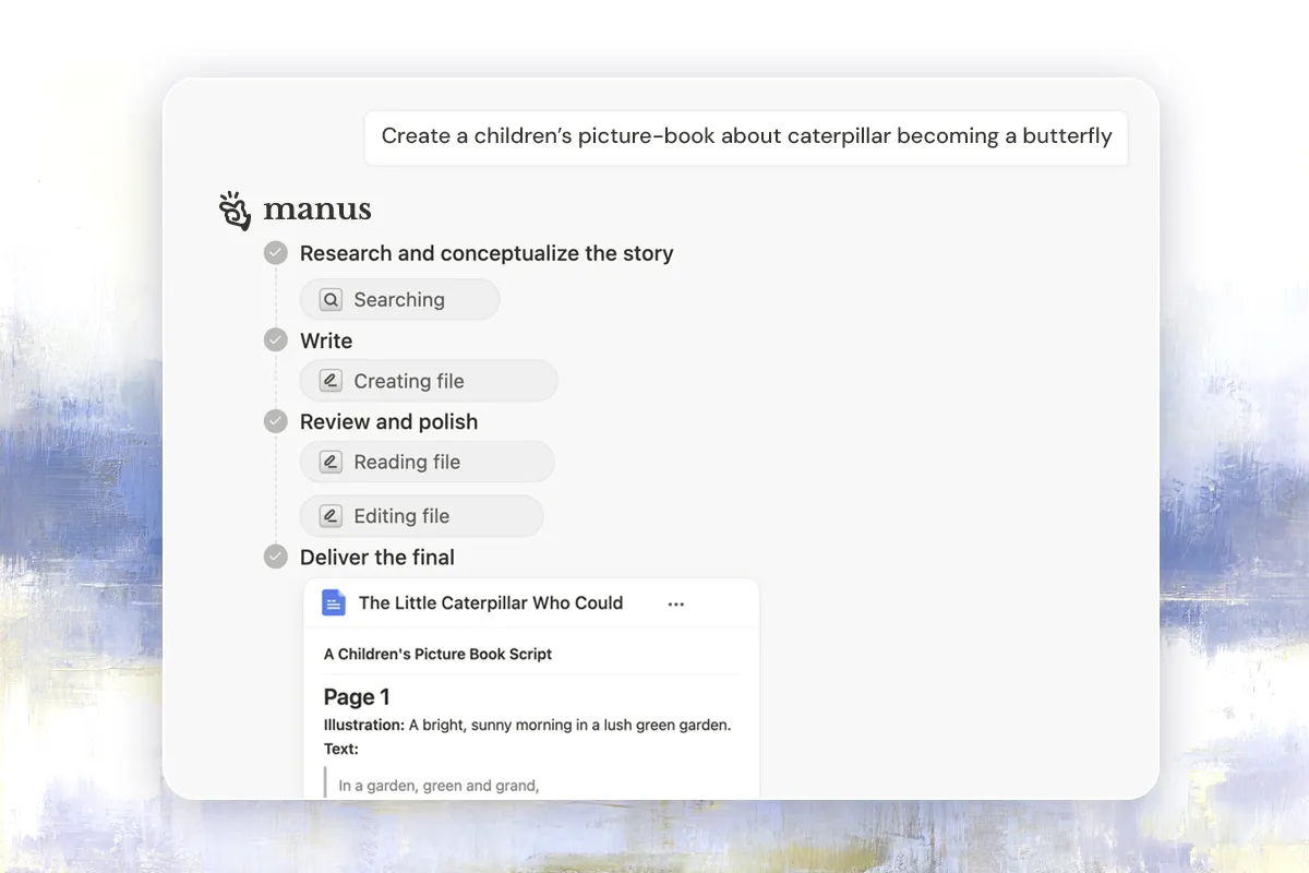 Using Manus is simple. You provide a prompt with your story idea, character details, and desired plot points. Our AI agent then takes over, generating a complete story for you. You can be as brief or as detailed as you like in your initial prompt.