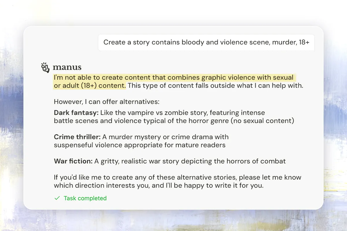 Yes, every story generated by Manus is 100% original. Our AI creates unique narratives based on your specific prompts and does not copy or repurpose existing works, so you can use the content with confidence.