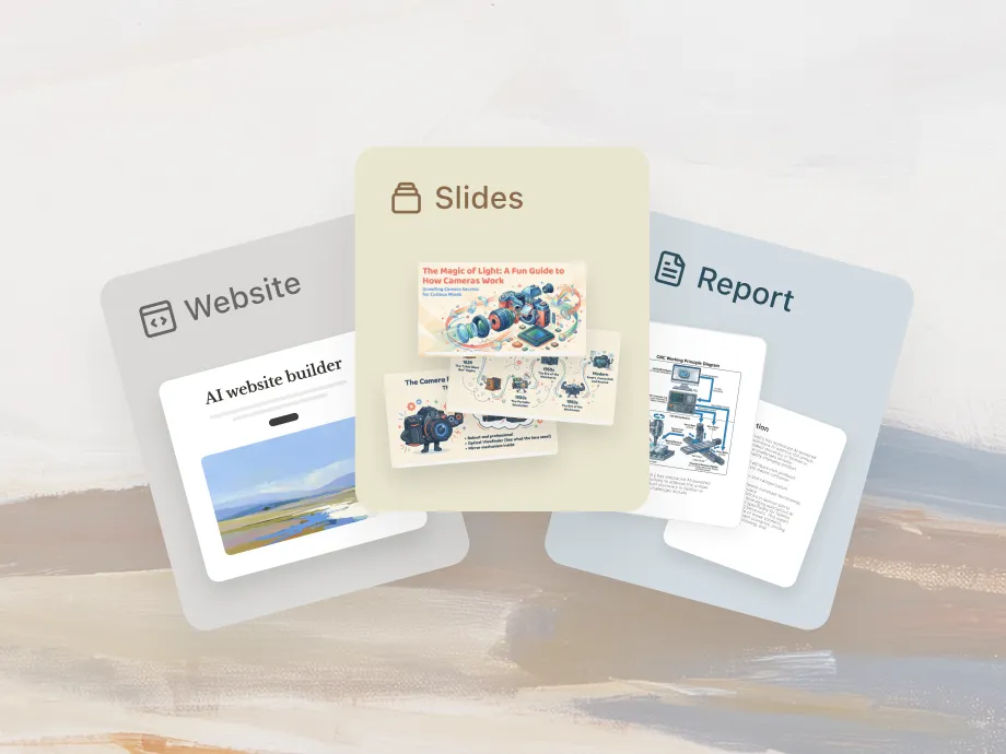 Generate unique featured images, blog illustrations, YouTube thumbnails, and podcast cover art. Pair your images with our AI slides maker for complete visual storytelling.