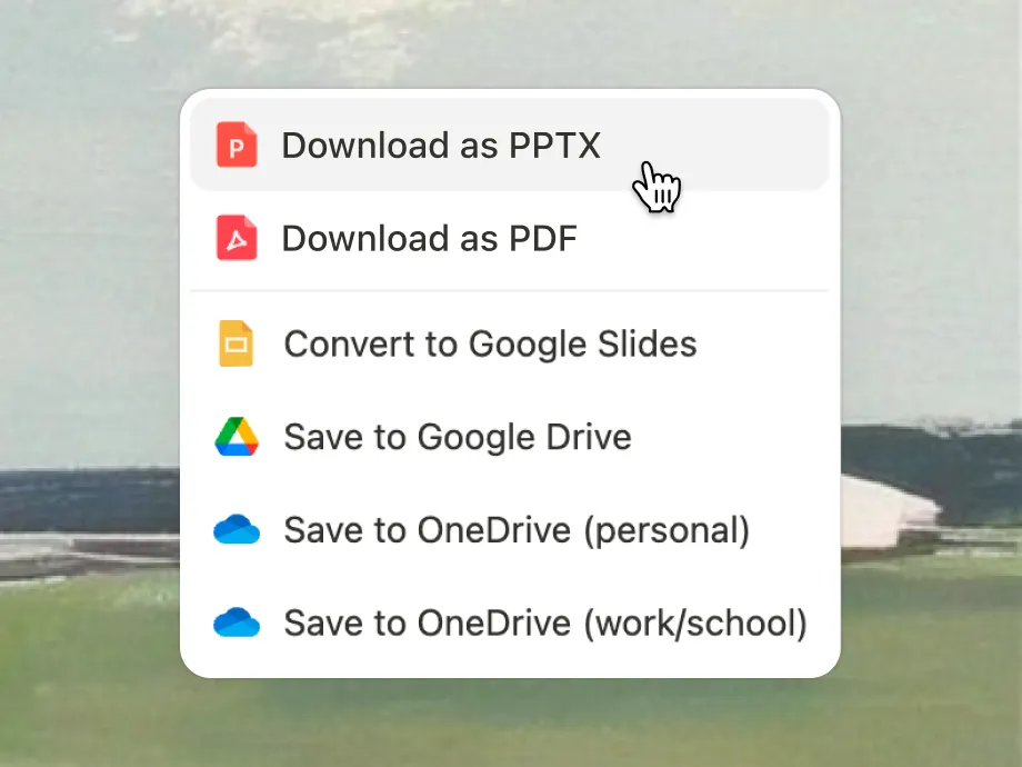 Download your finished presentation in PowerPoint (.pptx) or PDF format. The .pptx file is fully editable in PowerPoint or Google Slides.